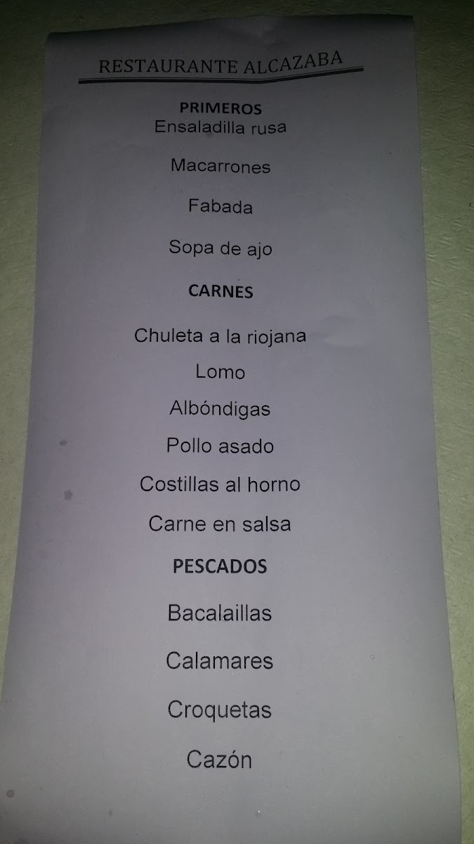 Restaurante La Alcazaba Menu